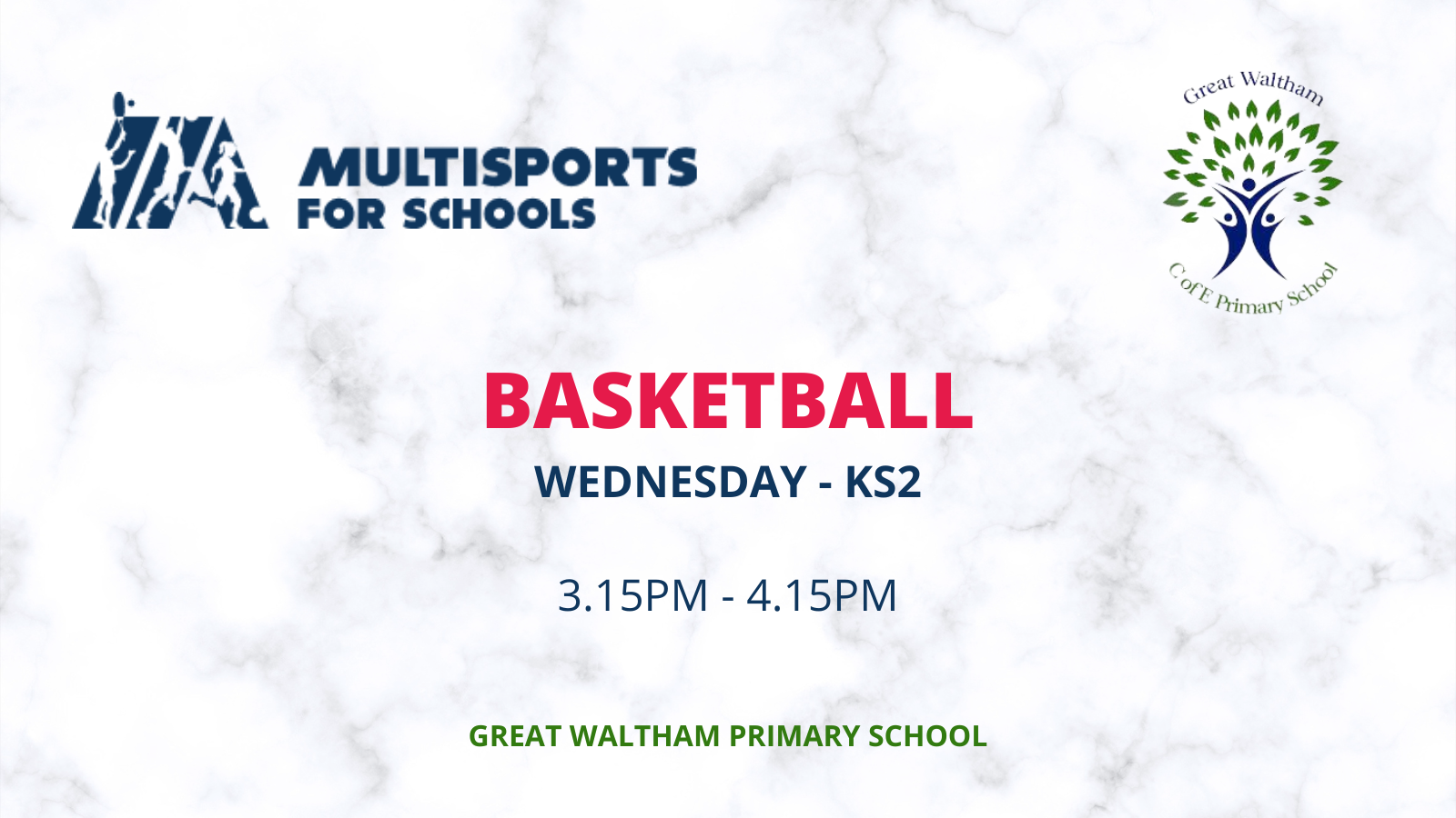 Running Wednesday after school, 3.15pm - 4.15pm.